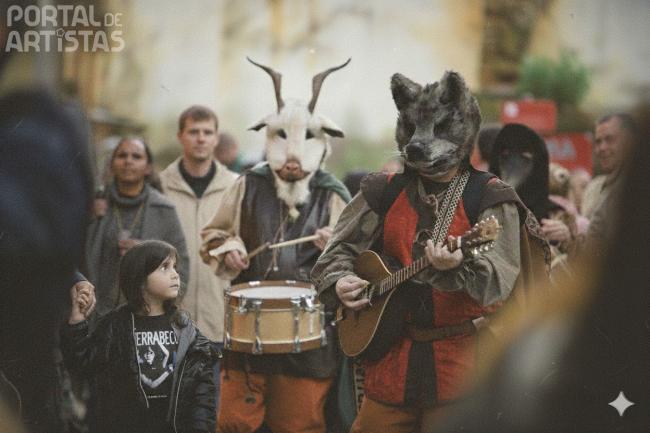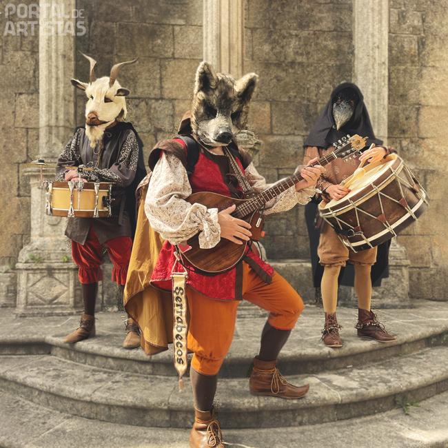 Descrição: Os Serrabecos são um trio de animação musical itinerante que funde a sonoridade medieval com o imaginário fantástico. Através de uma performance vibrante, o grupo transforma o espaço público numa celebração de folia e mistério.