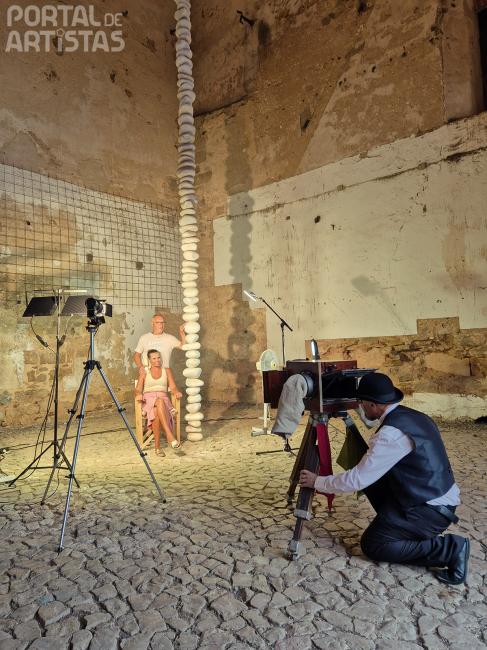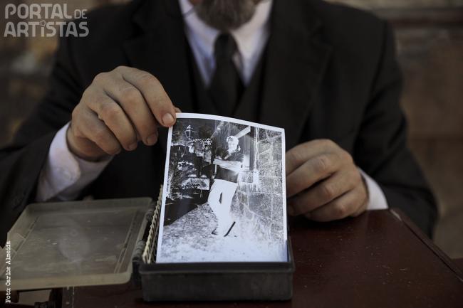 Descrição: “A Fabulosa Máquina de Fazer Parar o Tempo”, é a denominação genérica de uma performance e animação didática, com fotografia à la minute (ou fotografia à moda antiga).